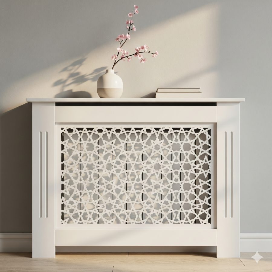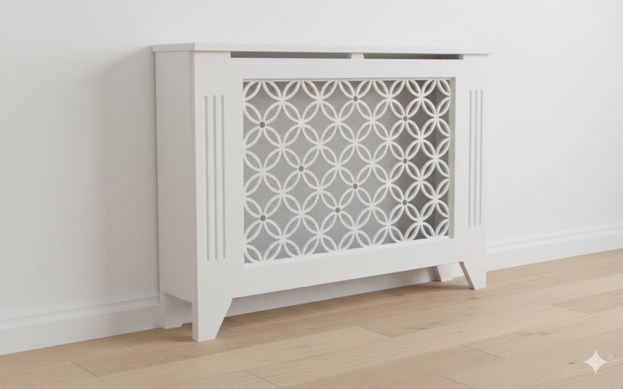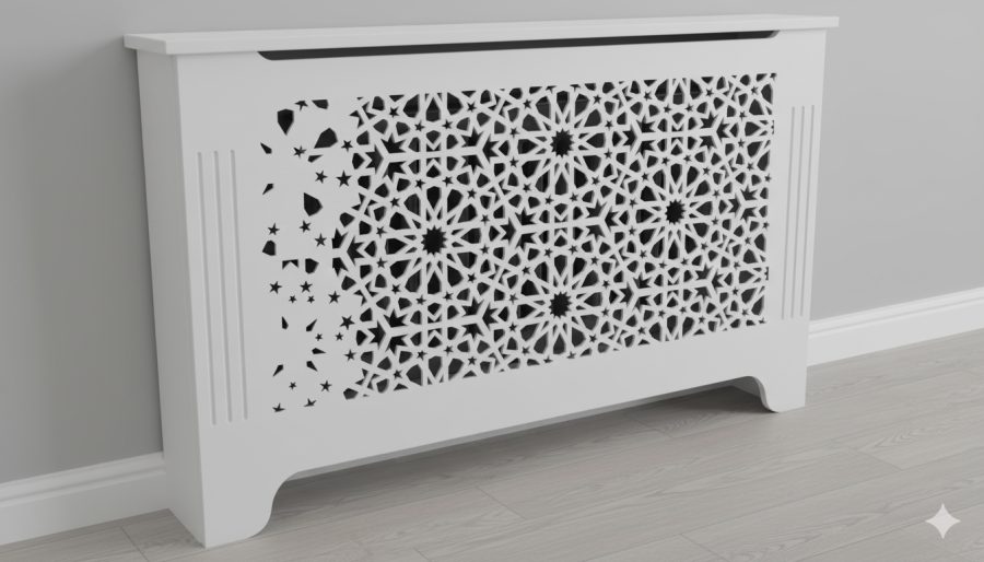 Mască calorifer realizată la comandă, cu grilaj decorativ.