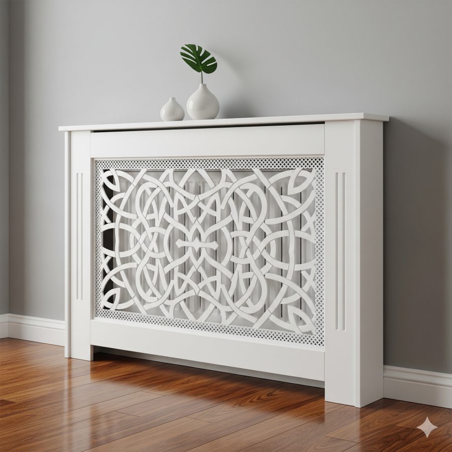 Mască calorifer realizată la comandă, cu grilaj decorativ.